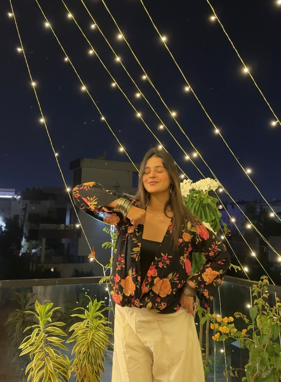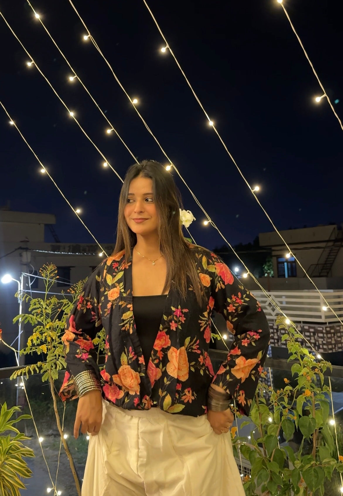 Black Floral Hakoba Shrug