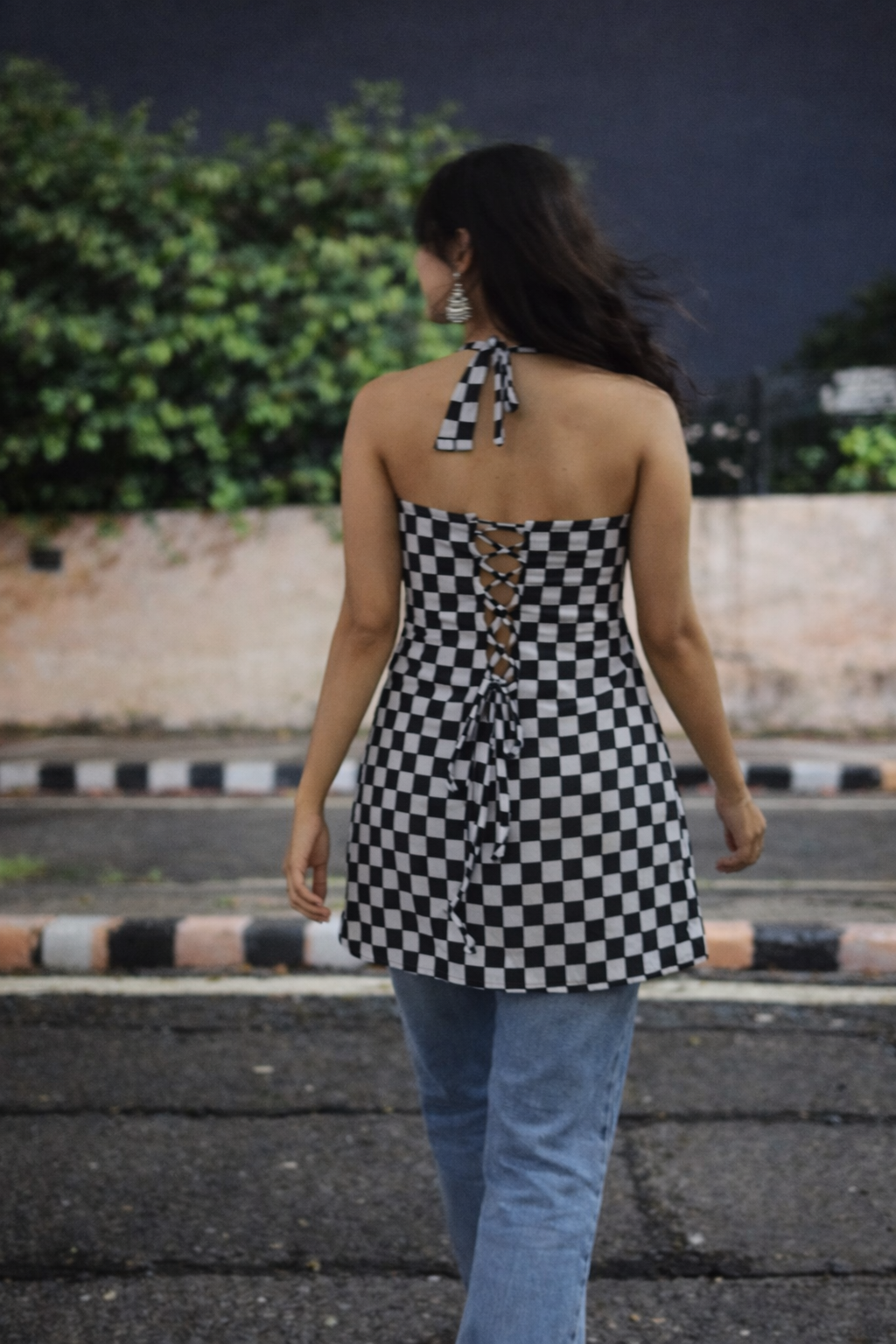 Check & Mate Halter Neck Short Kurti