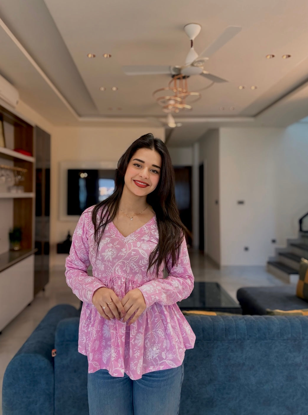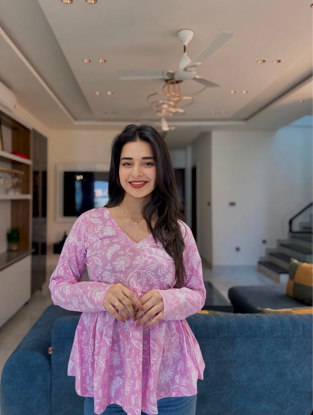 Have that DESI VALLA TOUCH this summer with our Lilac Magic Peplum Short Kurti