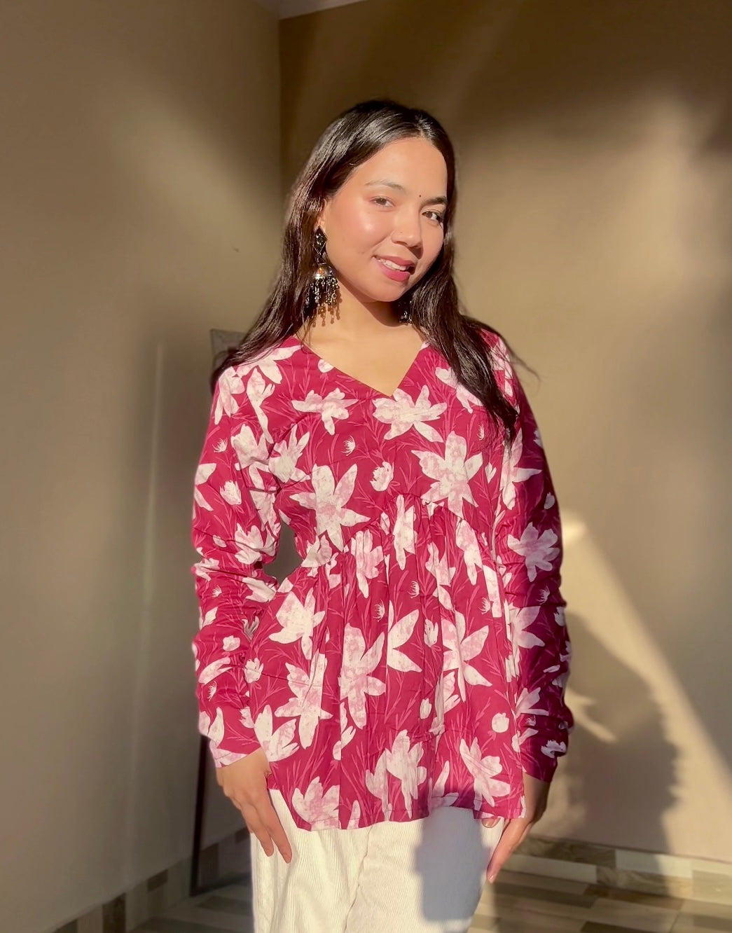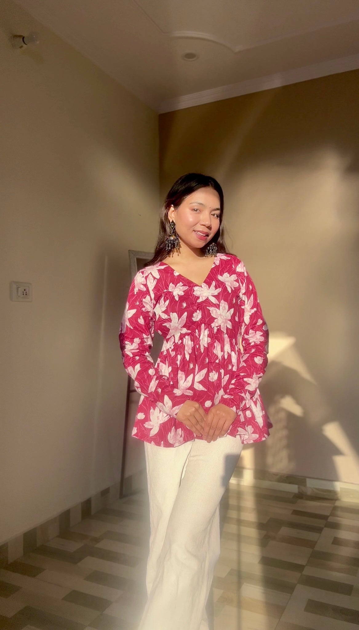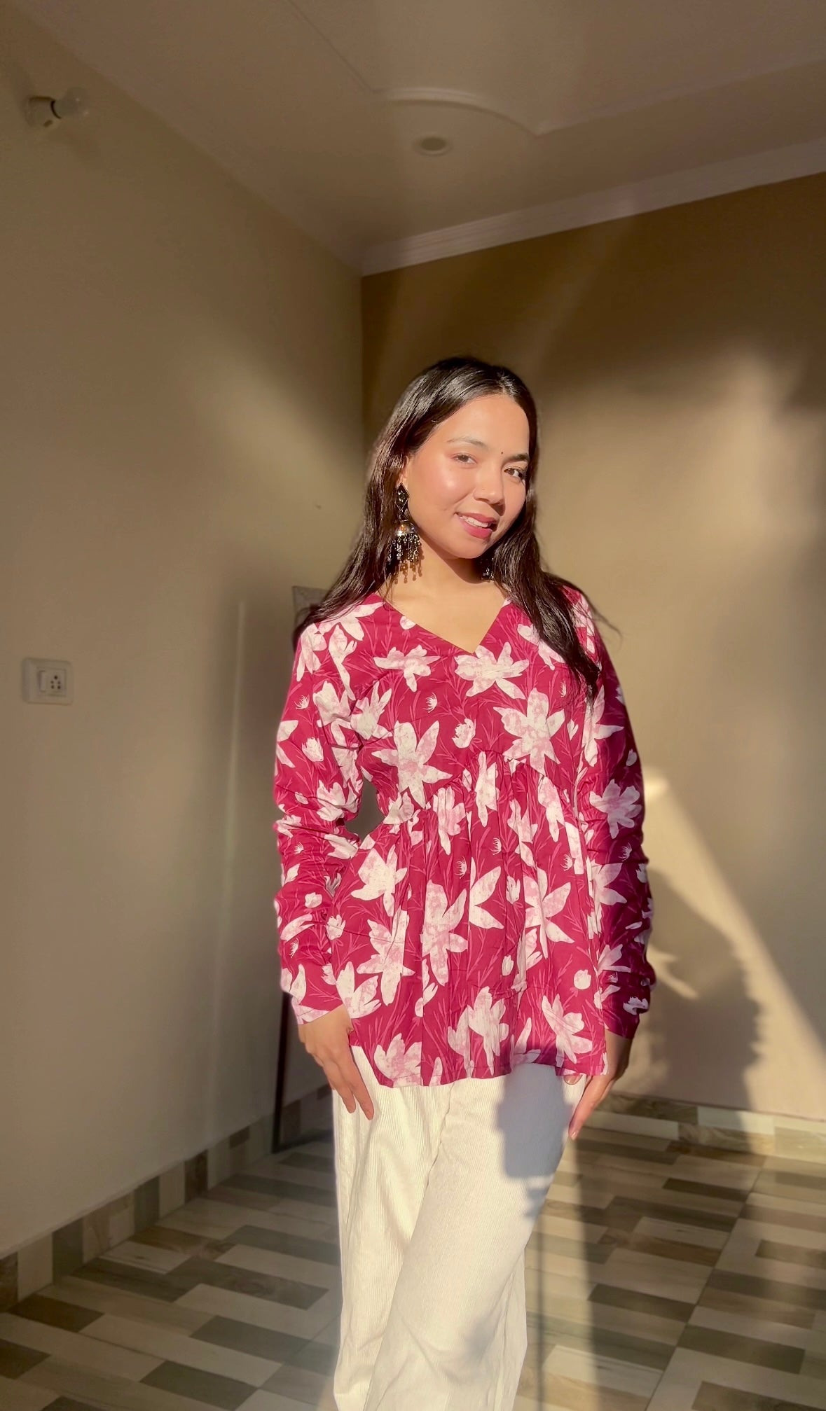 Have that DESI VALLA TOUCH this summer with our Mauve Blossom Peplum Short Kurti