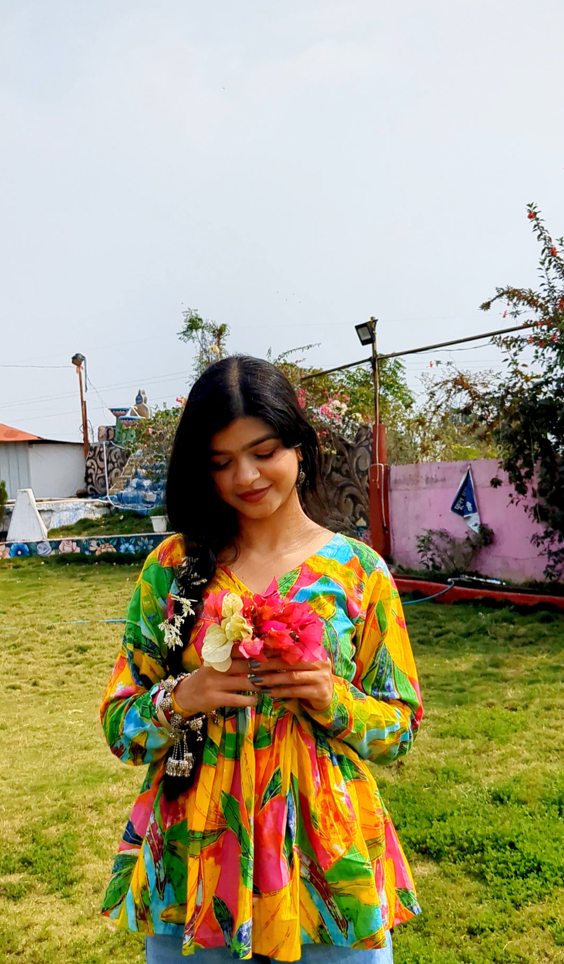 Have that DESI VALLA TOUCH this summer with our Multi Leaf Peplum Short Kurti Top