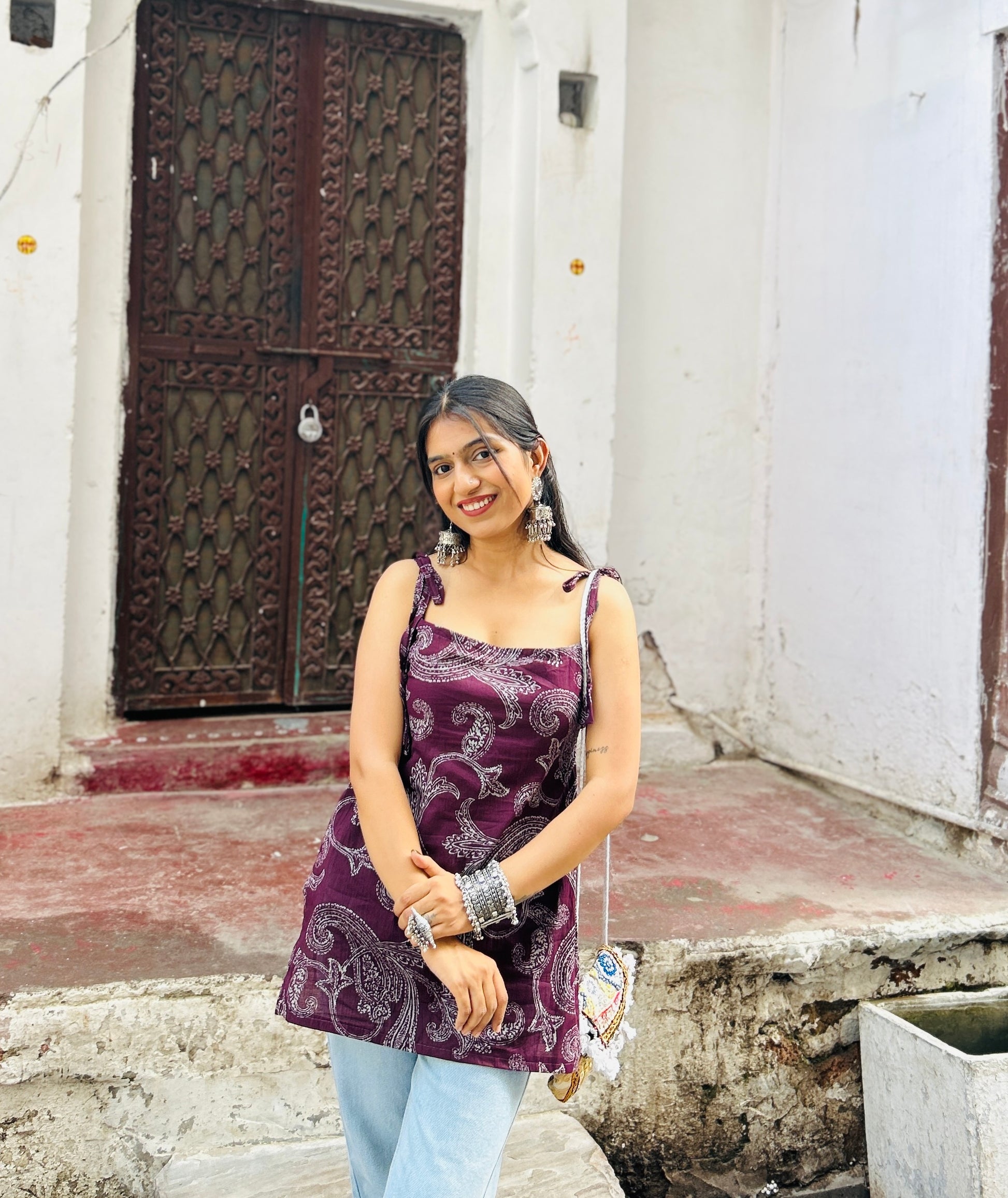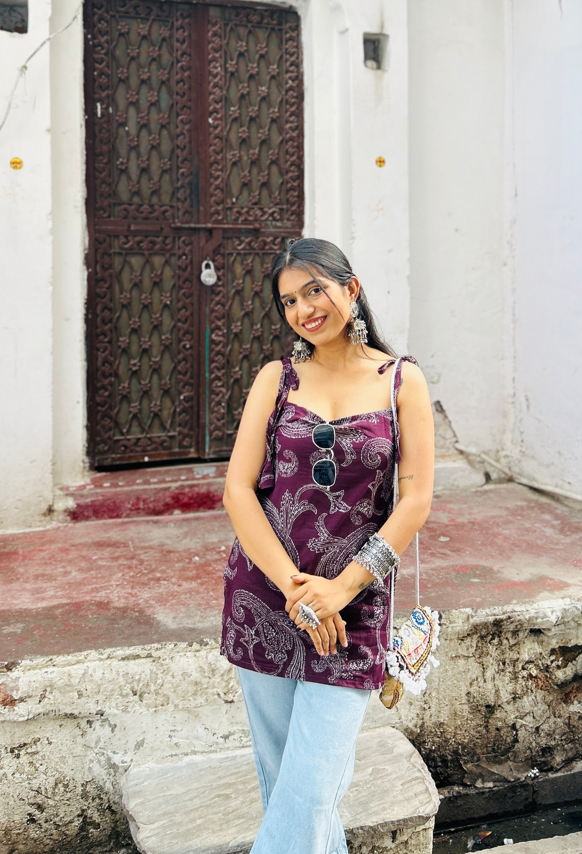 Papdi Chaat (wine) Straight Tie-up straps kurti