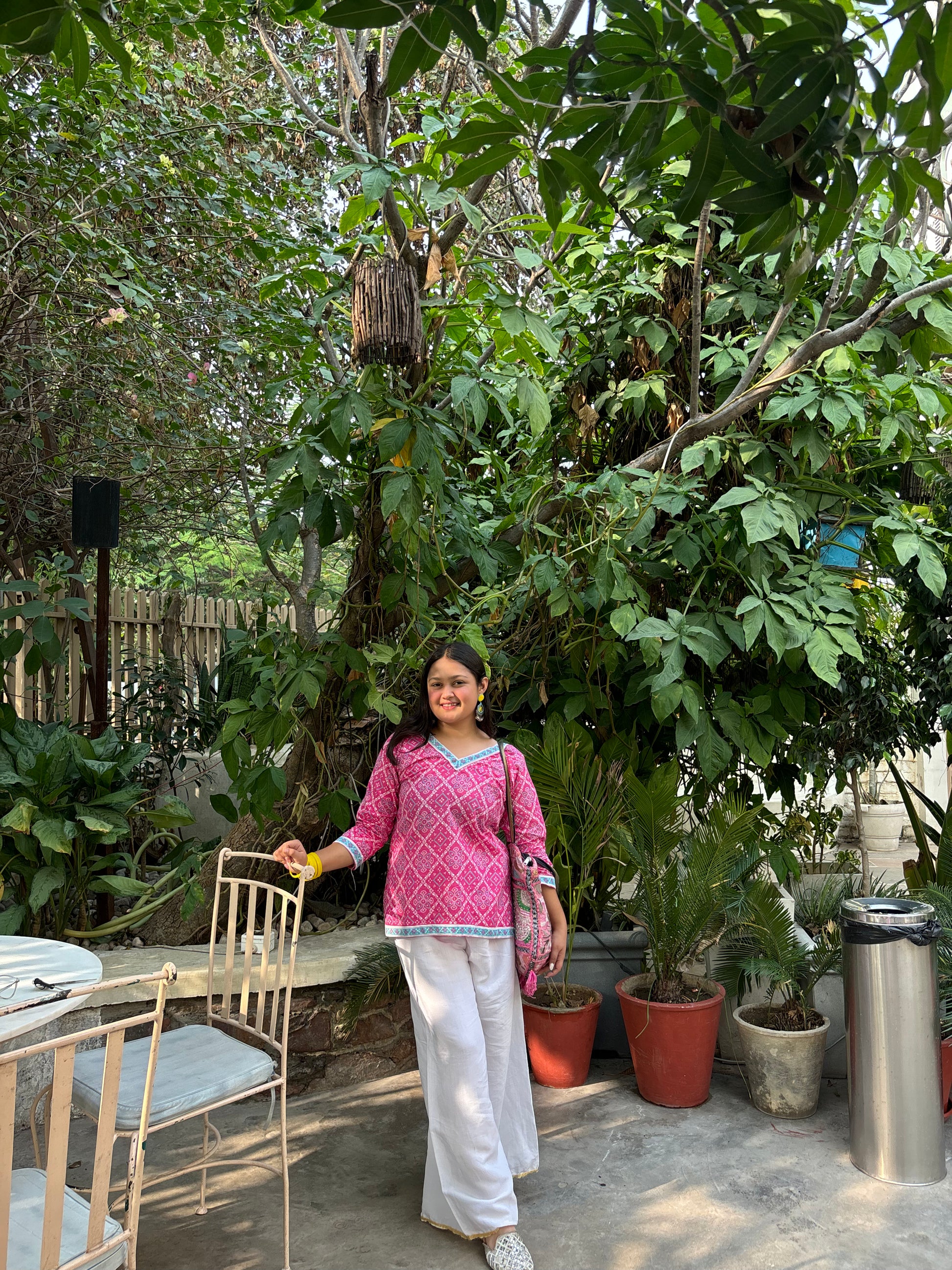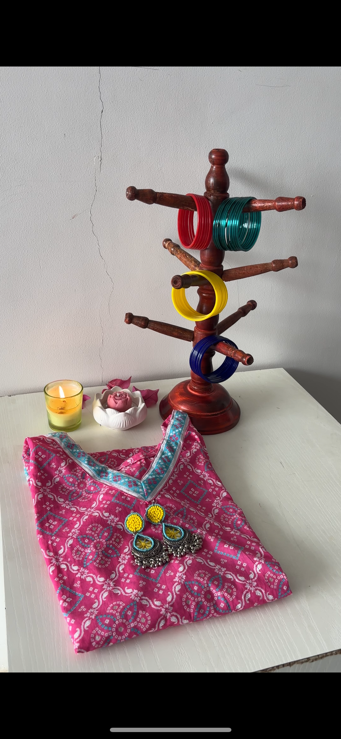 Have that DESI VALLA TOUCH this summer with our Pink Bandhini Straight Kurti Top