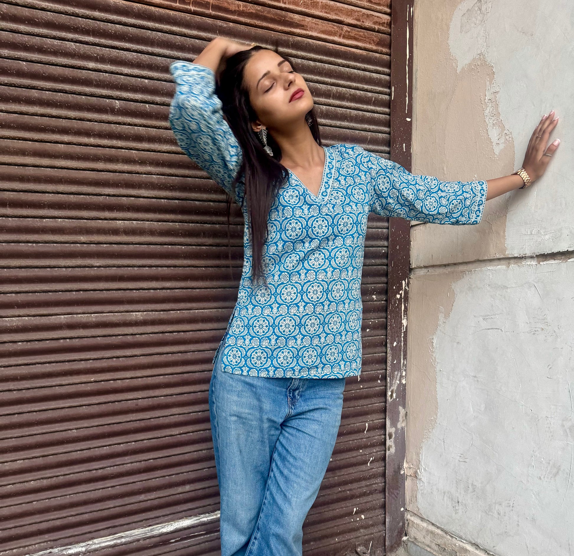 Have that DESI VALLA TOUCH this summer with our Rare Blue Straight Fit Kurti
